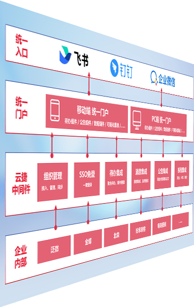 对协作平台提供支持服务,,,,支持企业应用与协作平台对接,,,包含组织同步、、消息集成、、、待办集成等。。。支持目前主流的协作平台:钉钉、、、、企微和飞书。。。。